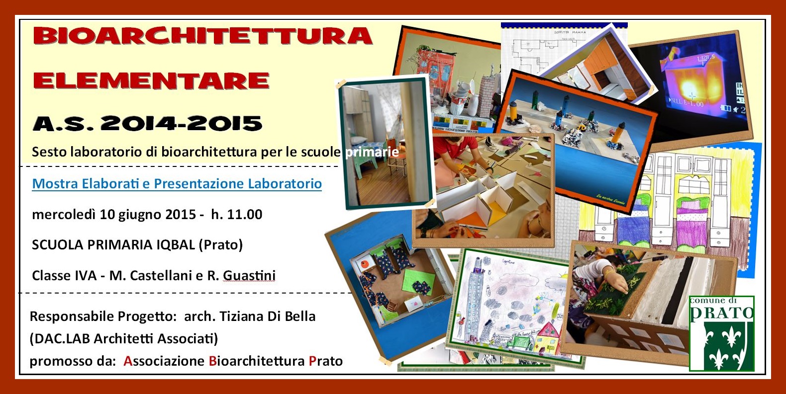 Sesto laboratorio di Bioarchitettura Elementare per le scuole primarie della città di Prato. Invito alla presentazione dell’esposizione finale degli elaborati dei ragazzi.